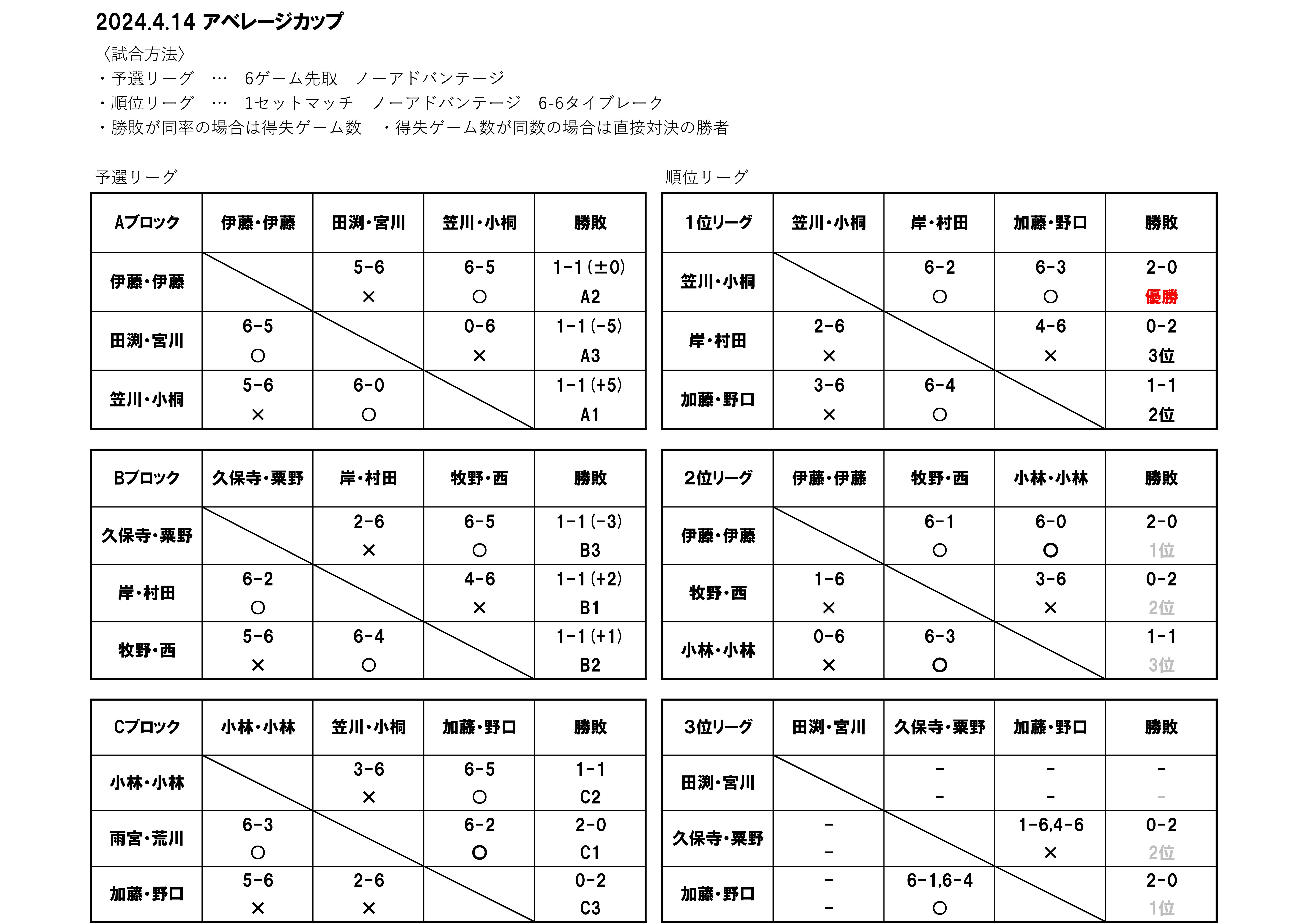 イベント結果 6月2日(日)開催!ニッケジュニアテニス大会 S5の部 2024年06月03日 6月2日(日)開催!ニッケジュニアテニス大会 S4の部 2024年06月03日 5月26日(日)開催!ニッケジュニアテニス大会 S3の部 2024年05月28日 5月26日(日)開催!ニッケジュニアテニス大会 S2の部 2024年05月28日 5月19日(日)開催!エンジョイダブルス 2024年05月20日 5月5日(日)開催!セミオープン ミックスダブルス 2024年05月06日 4月21日(日)開催!テニトレ倶楽部 2024年04月22日 1 4月14日(日)開催!アベレージカップ 2024年04月15日 3月31日(日)開催!チーム対抗 ゲーム練習会 2024年04月01日 3月29日(金)開催!オープン女子ダブルス 2024年03月30日 1 / 1212345...10...»最後 »