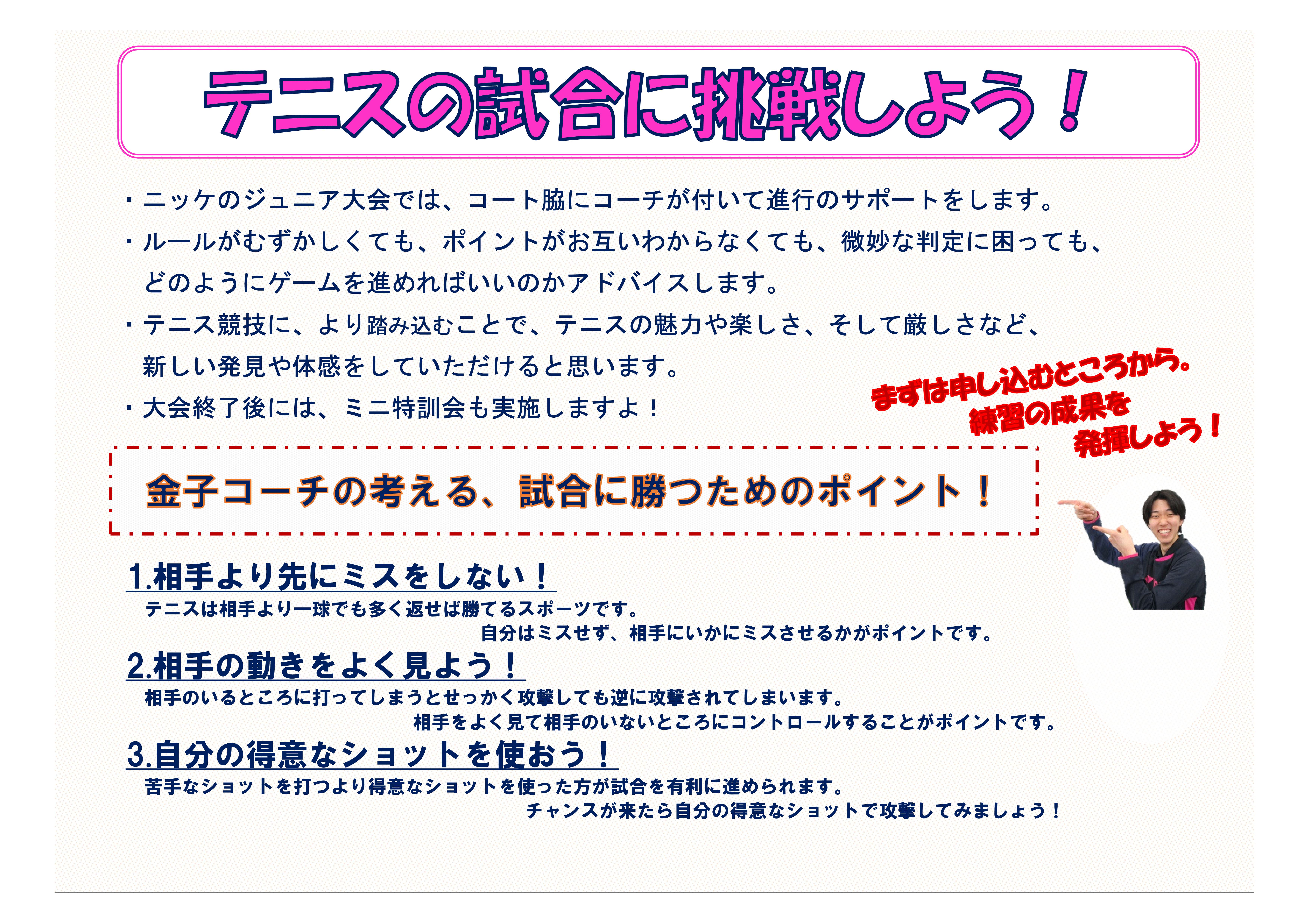 新着情報 6月30日(日)日曜テーマレッスン『完全スイートエリア』 2024年06月01日 7月の練習会 2024年06月01日 第100期 スペシャルテニス 6月23日(日) 2024年05月25日 6月のテーマレッスン 2024年05月18日 セミオープン男子ダブルス 6月9日(日) 2024年05月11日 6月のラリー ゲーム 球出し練習会 2024年05月05日 ニッケジュニア大会 S2・3:5月26日 S4・5:6月2日 2024年04月27日 5月の練習会 2024年04月03日 新サービススタート!家族会員振替シェア! 2023年01月24日 ニッケタイムズvol,3 2022年07月29日 1 / 212»