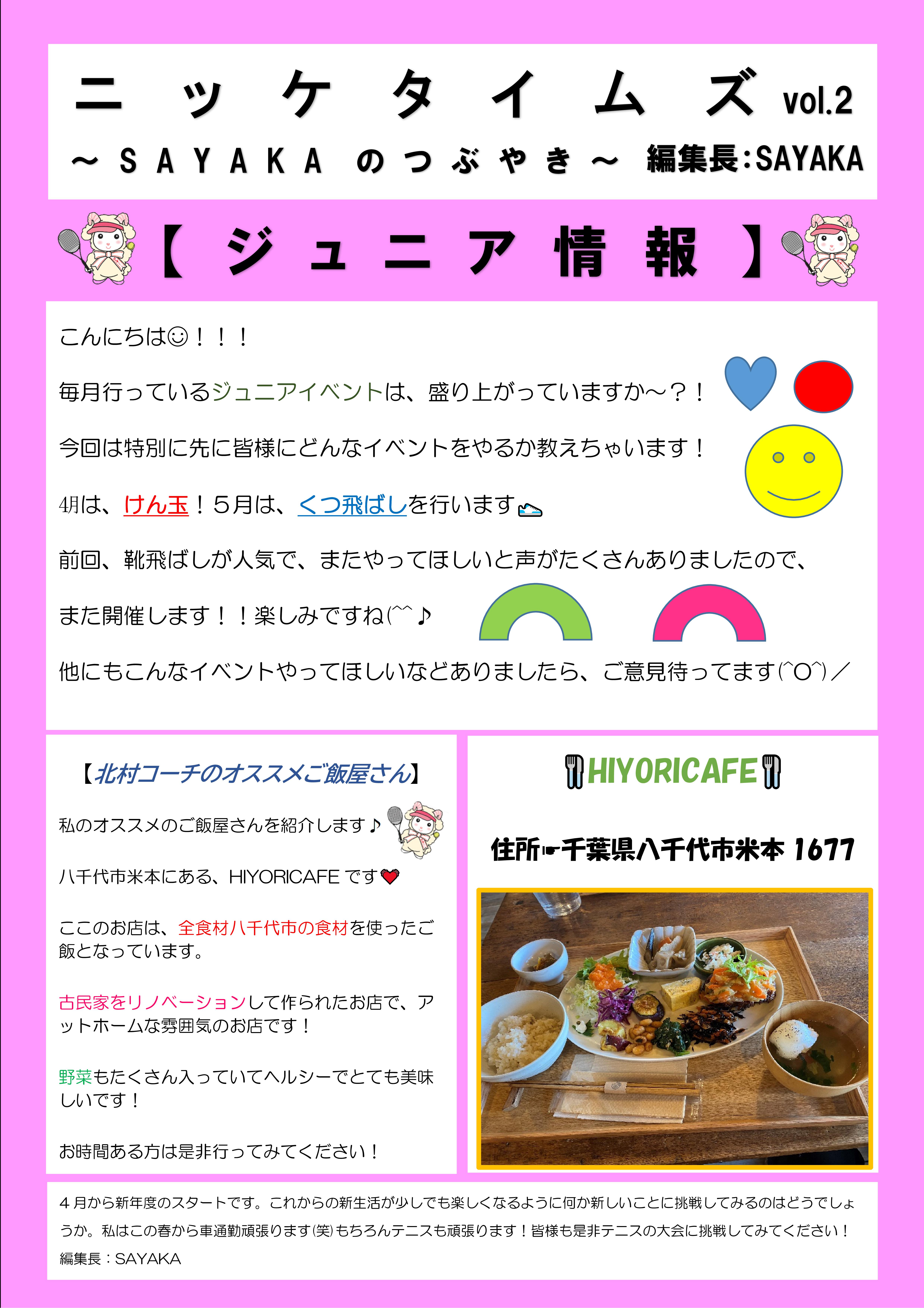 新着情報 ジュニア新聞 ニッケタイムズvol.2 2022年03月29日 八千代緑が丘にニッケゴルフスクールがオープンします! 2022年03月23日 FMふくろうラジオ出演しました! 2022年01月21日 第90期イベント結果 親子テニス 2021年10月03日 カスタマーボイス! 2021年10月02日 ジュニア新聞12号!! 2021年06月30日 Slinger Bag コーチデモンストレーション動画! 2021年06月29日 スクール生!八千代市市民大会女子ダブルス初級の部★優勝★ 2021年05月29日 ニッケジュニア新聞! 2021年05月18日 2 / 2«12
