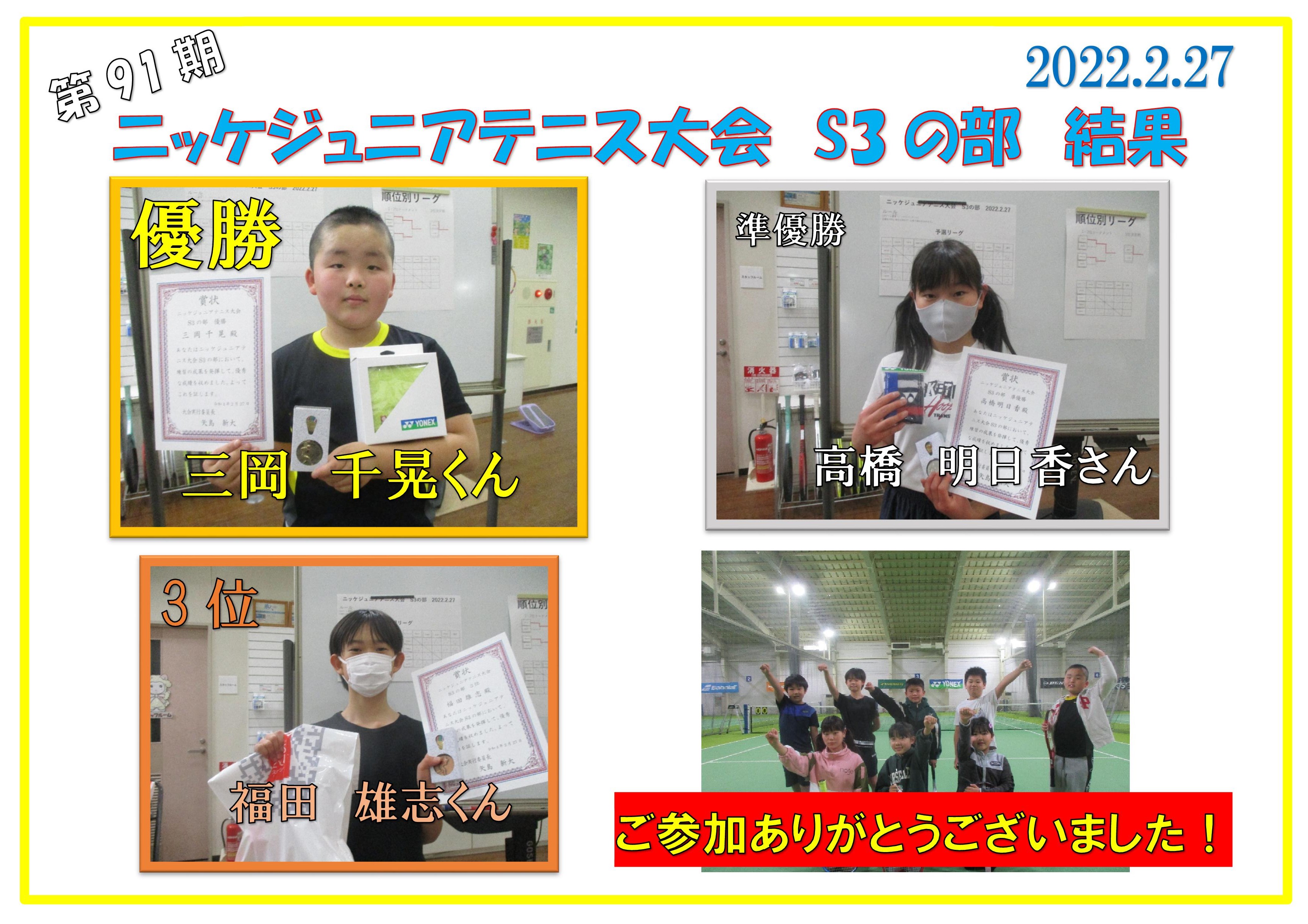 第91期 ジュニア大会S2の部/S3の部 結果!