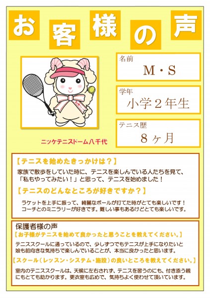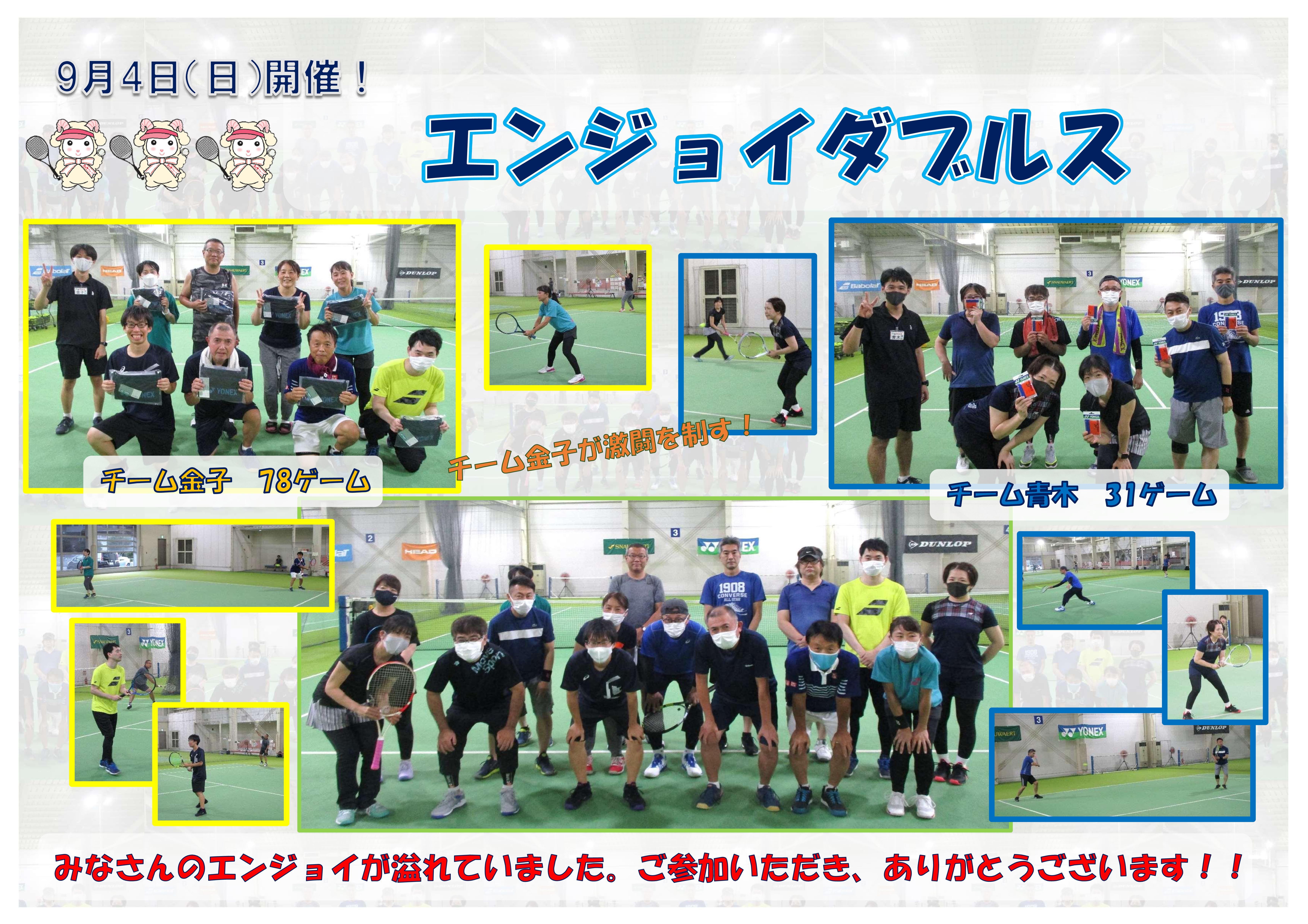 イベント結果 9月25日(日)開催!スペシャルテニス 2022年09月27日 ジュニアカスタマーボイス! 2022年09月06日 9月4日(日)開催!エンジョイダブルス 2022年09月06日 8月28日(日)開催!セミオープン男子ダブルス 2022年09月02日