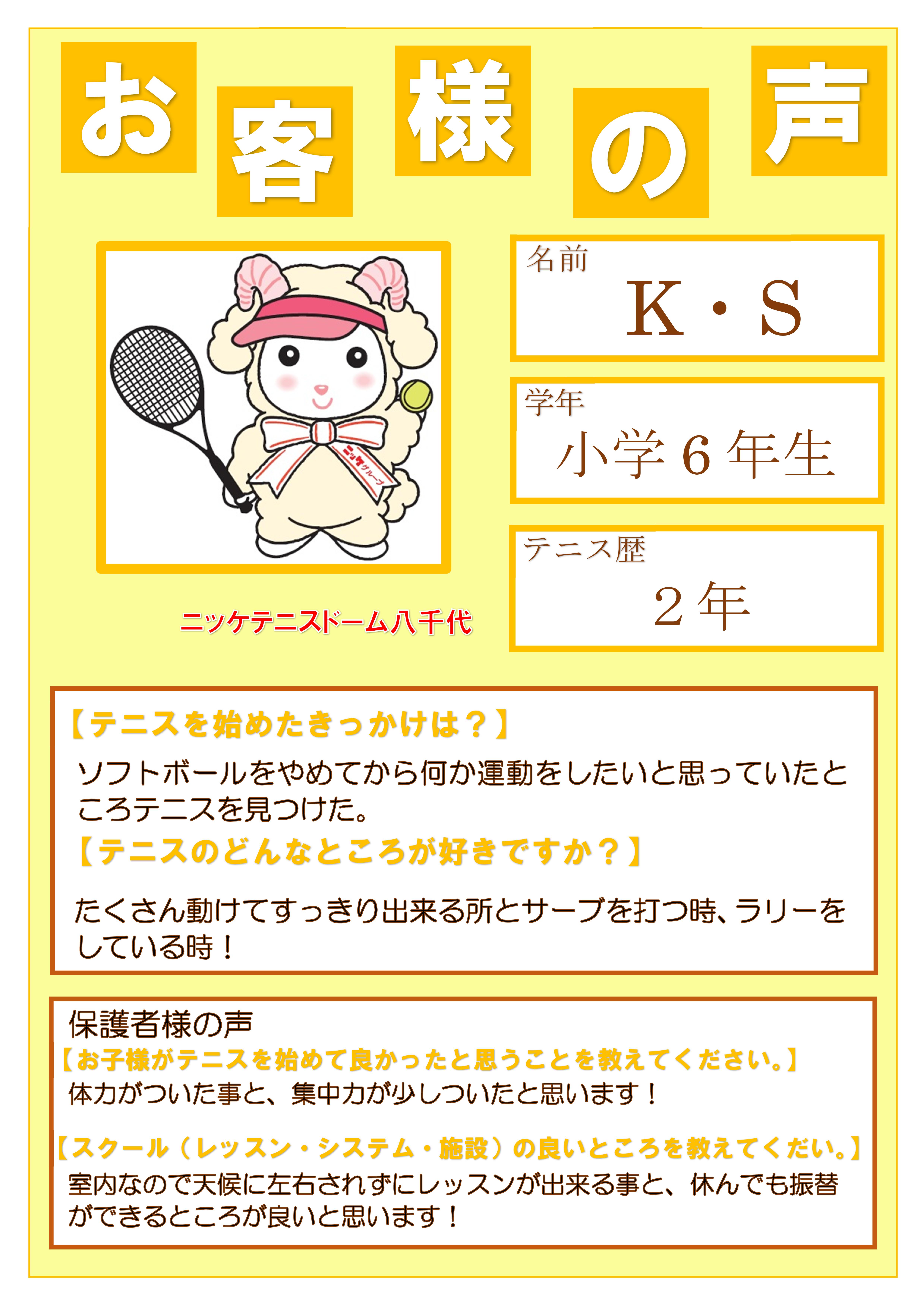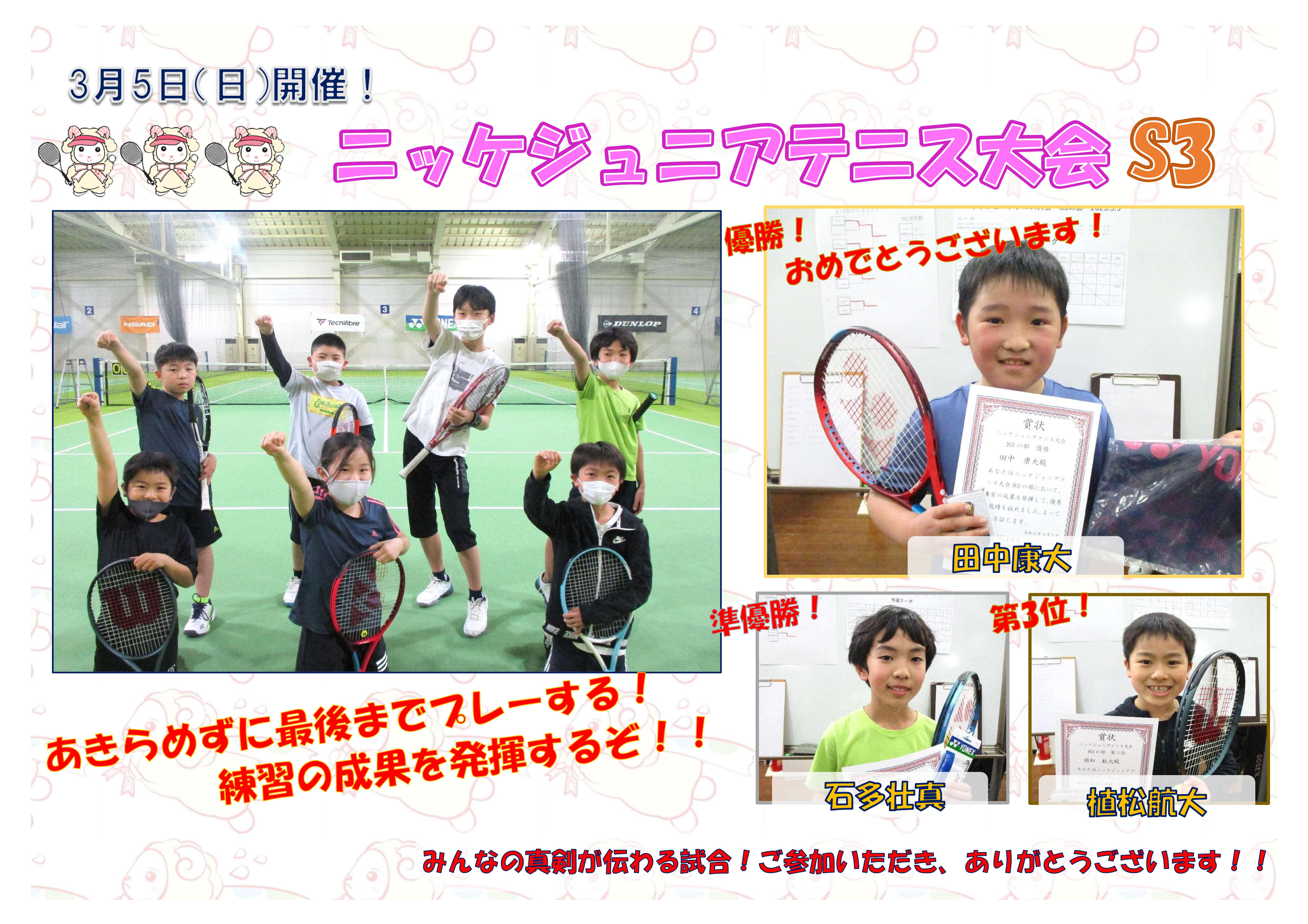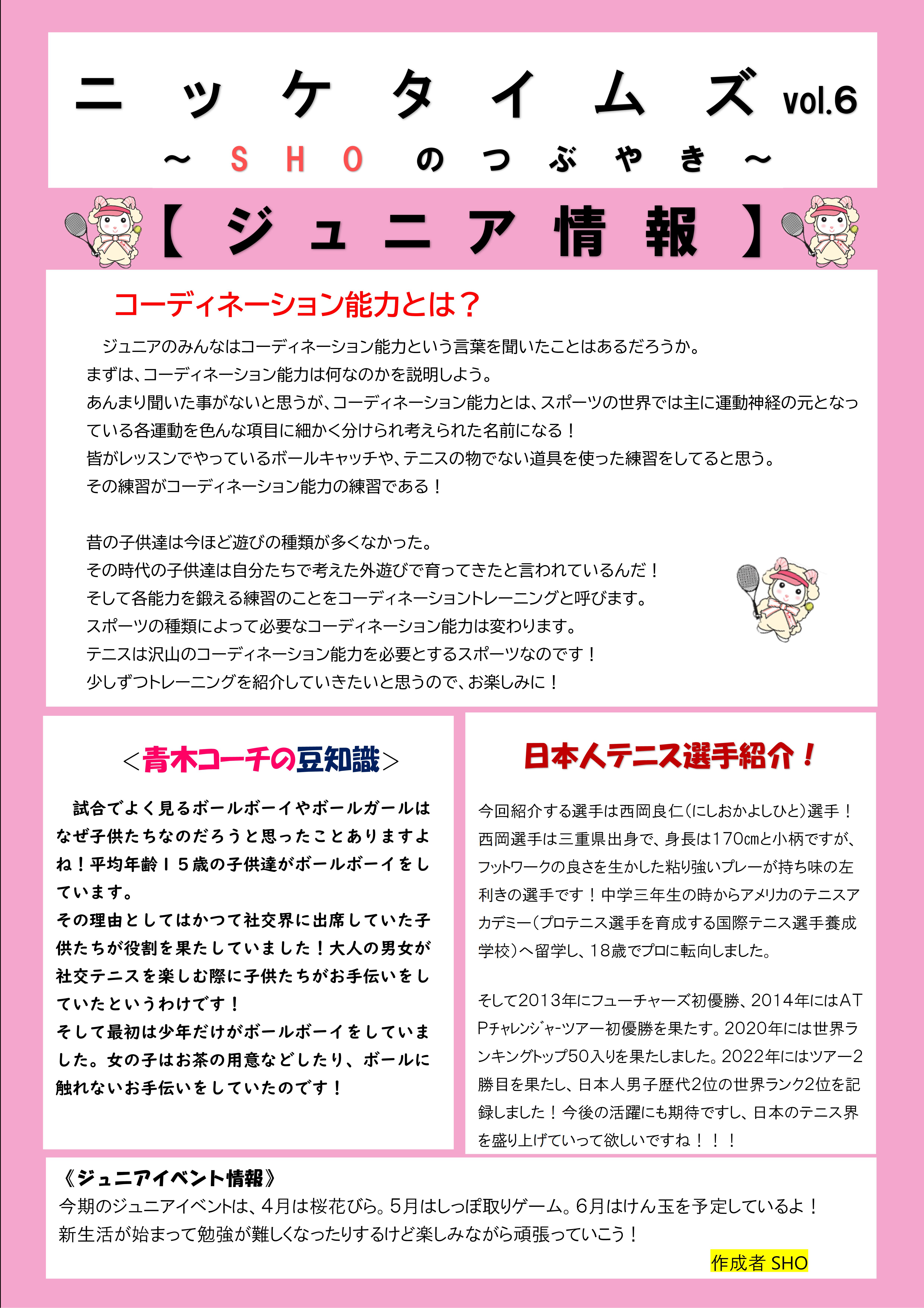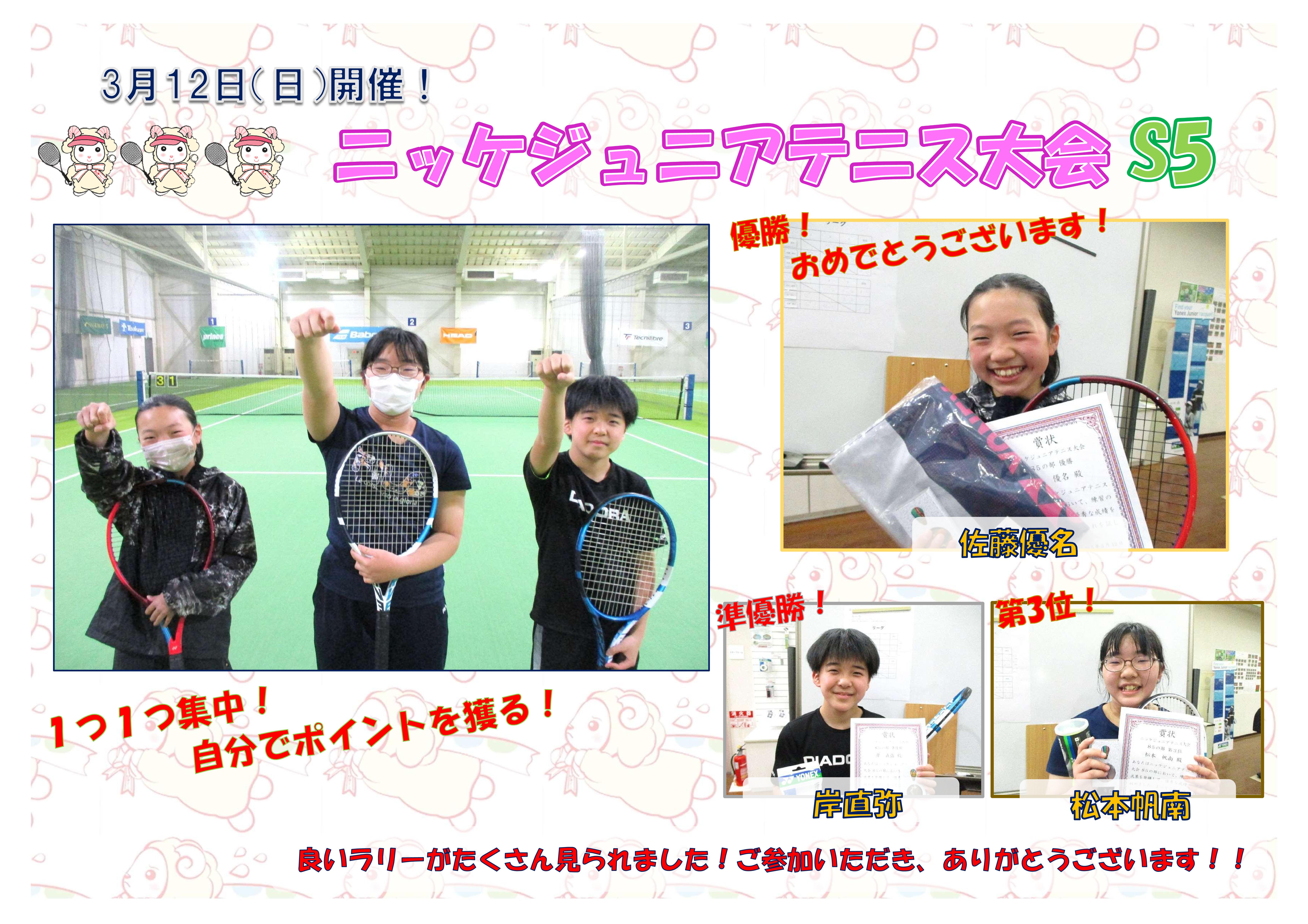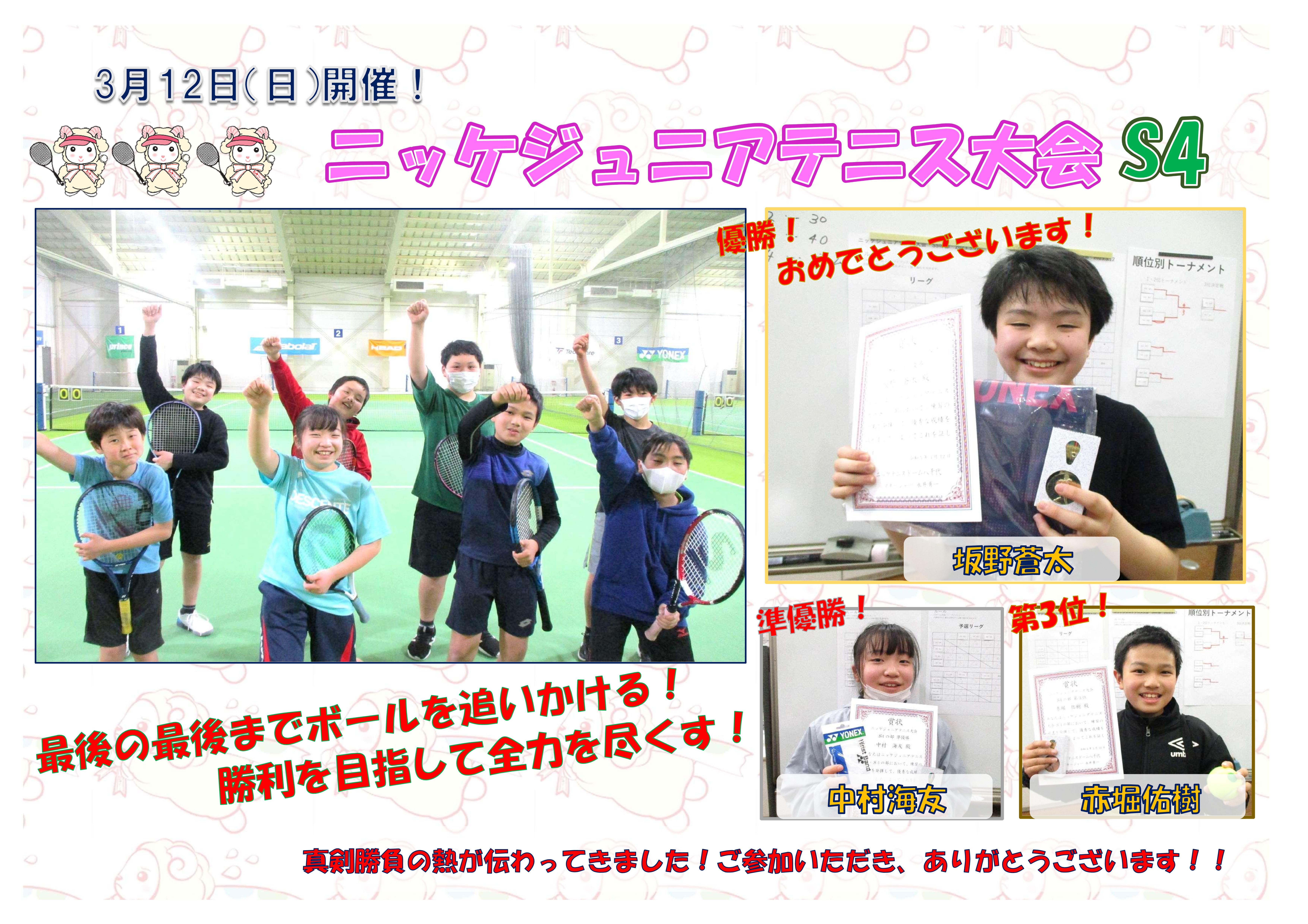 イベント&新着情報 ジュニア カスタマーボイス! 2023年03月29日 ニッケタイムズvol.6 2023年03月29日 3月26日(日)開催!第95期 スペシャルテニス 2023年03月28日 3月12日(日)開催!ニッケジュニアテニス大会 S5の部 2023年03月13日 3月12日(日)開催!ニッケジュニアテニス大会 S4の部 2023年03月13日 3月5日(日)開催!ニッケジュニアテニス大会 S3の部 2023年03月06日 3月5日(日)開催!ニッケジュニアテニス大会 S2の部 2023年03月06日