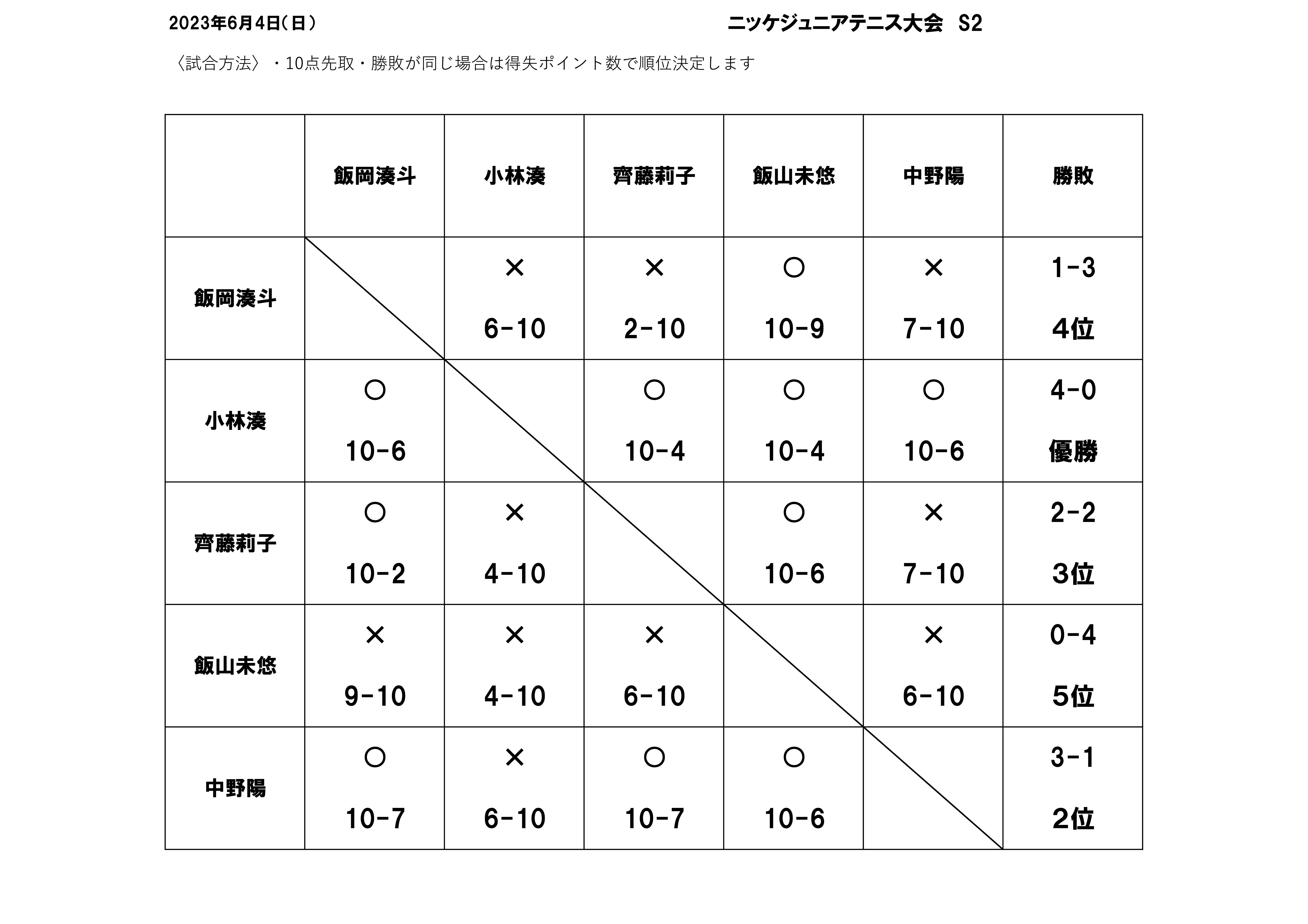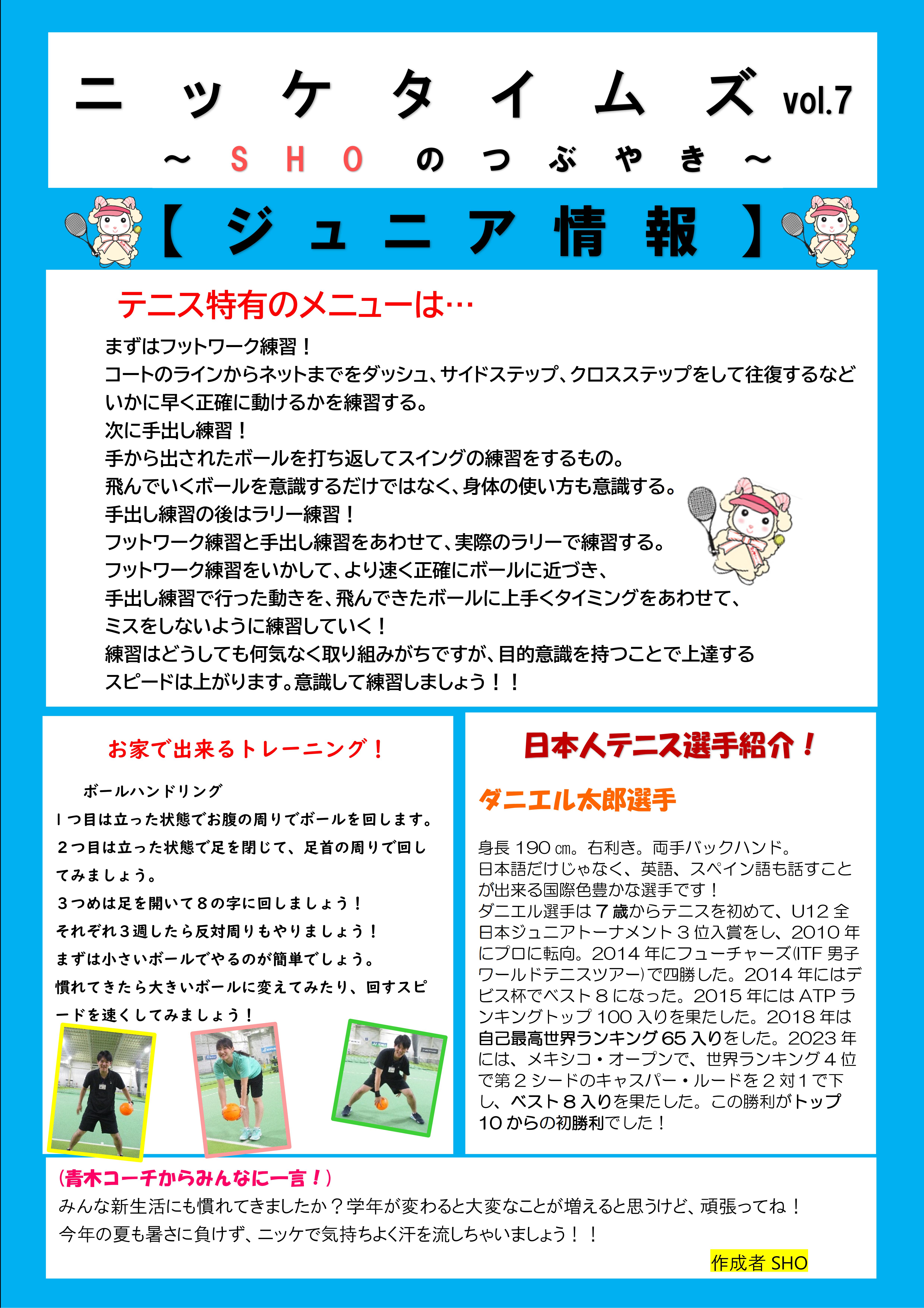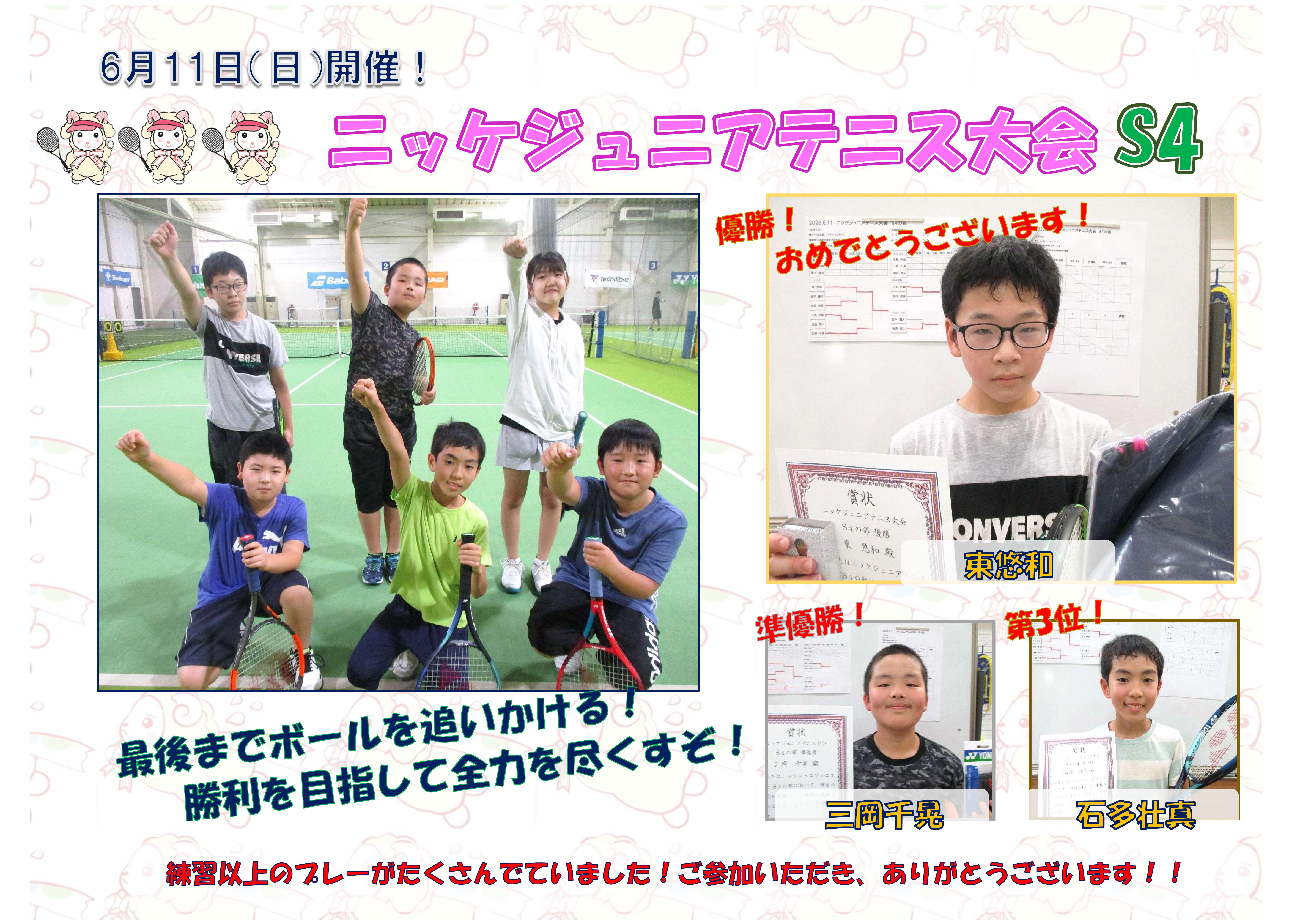 イベント&新着情報 ニッケタイムズvol.7 2023年06月30日 ジュニア カスタマーボイス! 2023年06月30日 6月25日(日)開催!スペシャルテニス 2023年06月26日 6月11日(日)開催! ニッケジュニアテニス大会 S5の部 2023年06月12日 6月11日(日)開催!ニッケジュニアテニス大会 S4の部 2023年06月12日 6月4日(日)開催!ニッケジュニアテニス大会 S3の部 2023年06月06日 6月4日(日)開催!ニッケジュニアテニス大会 S2の部 2023年06月06日