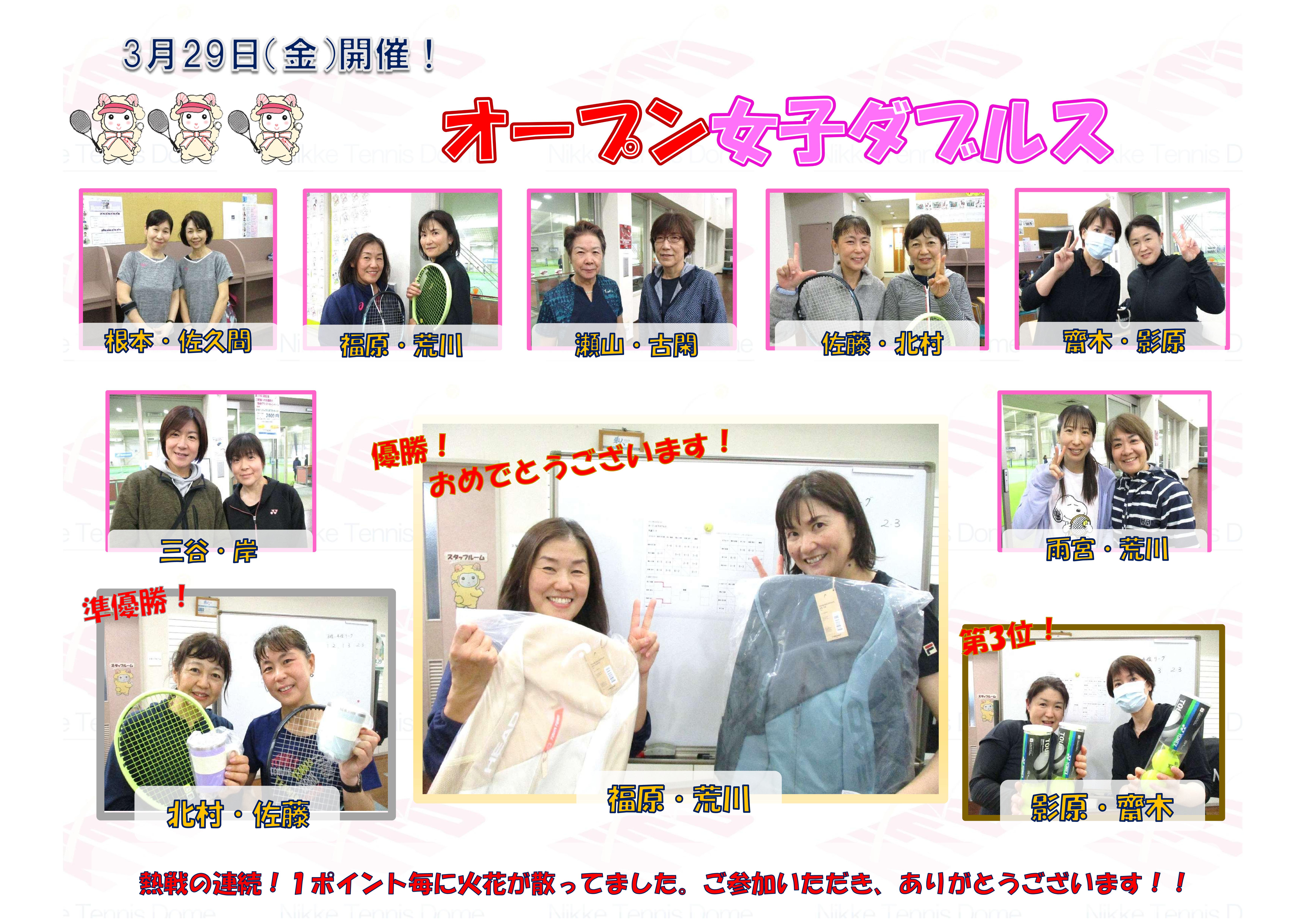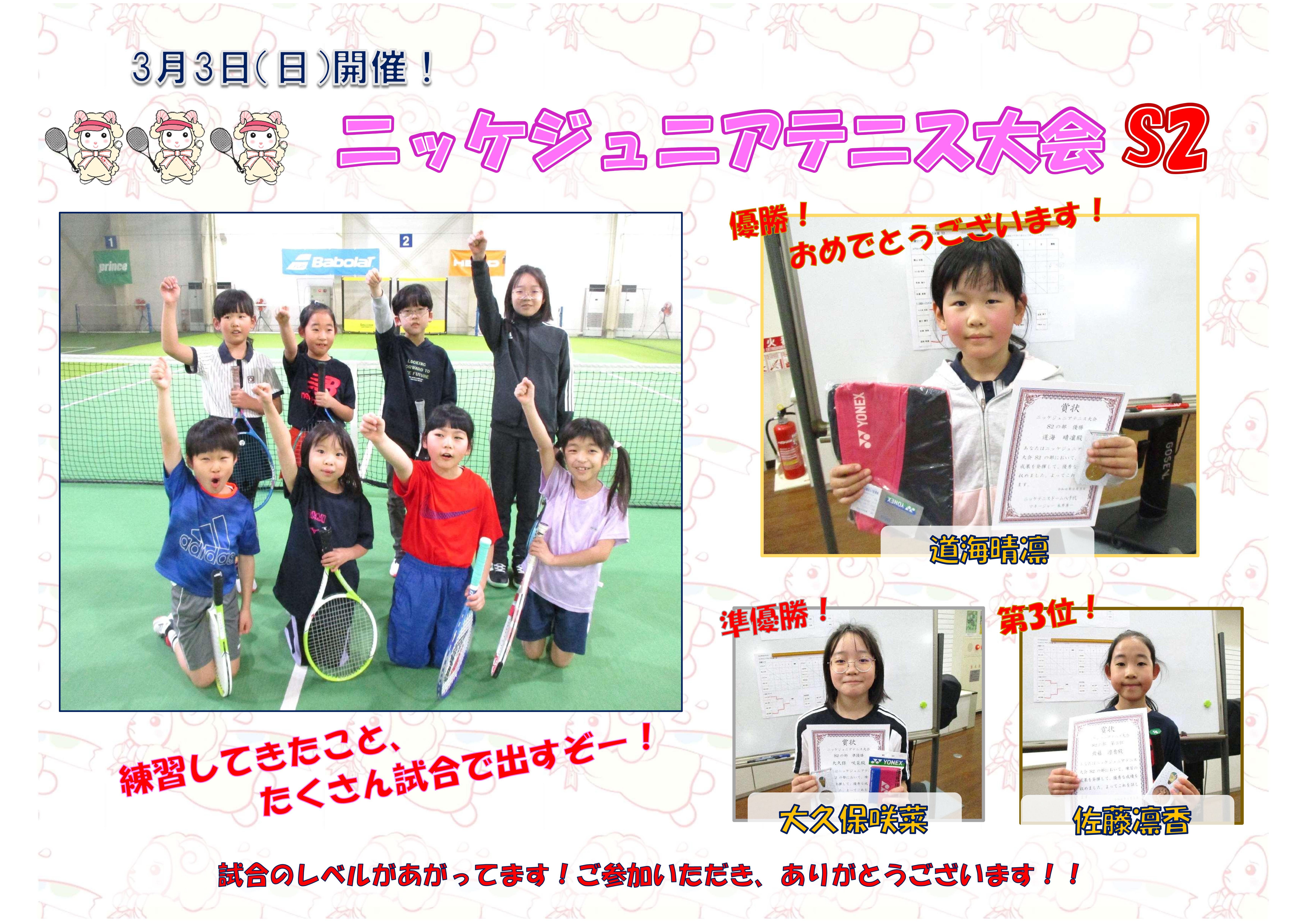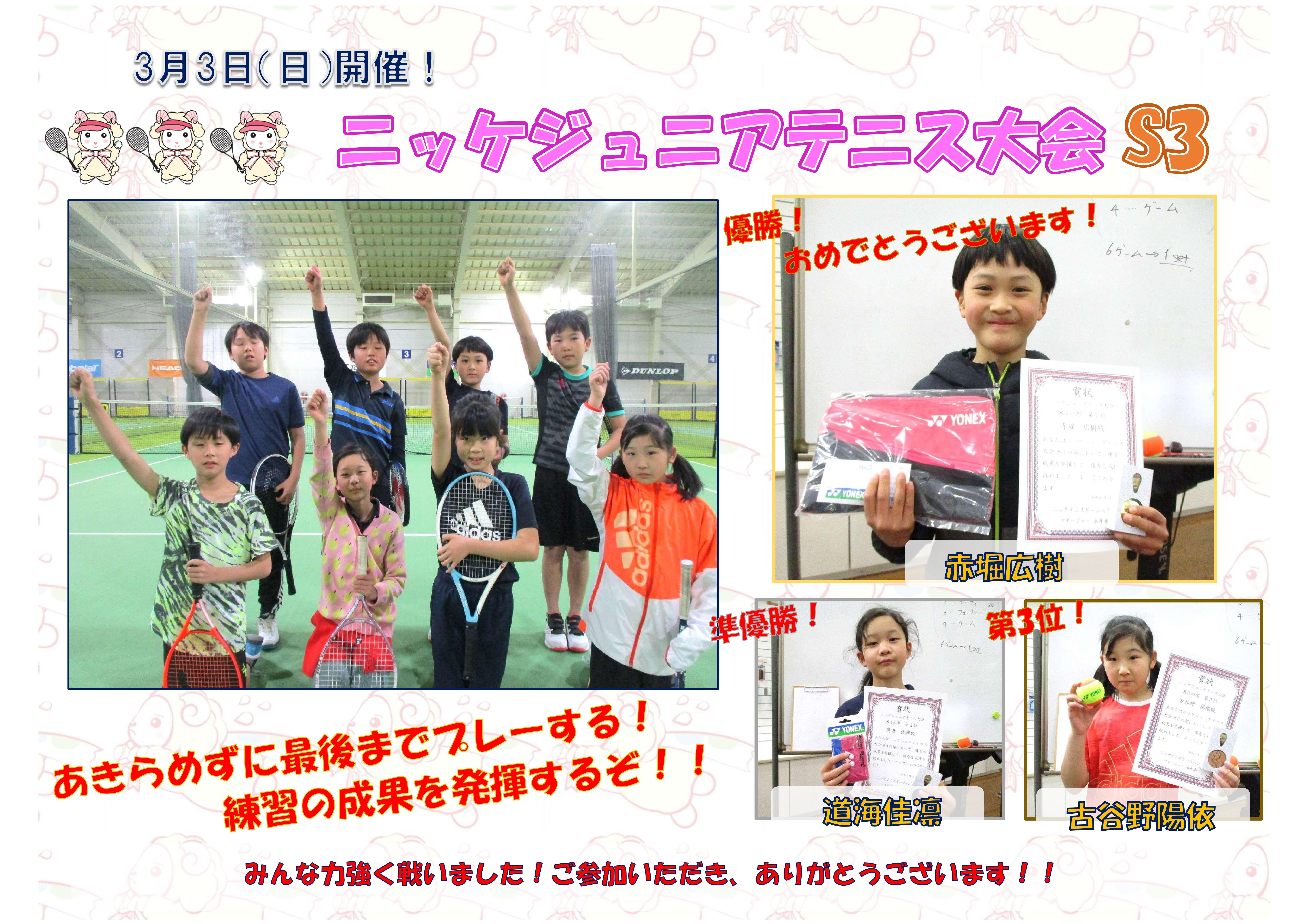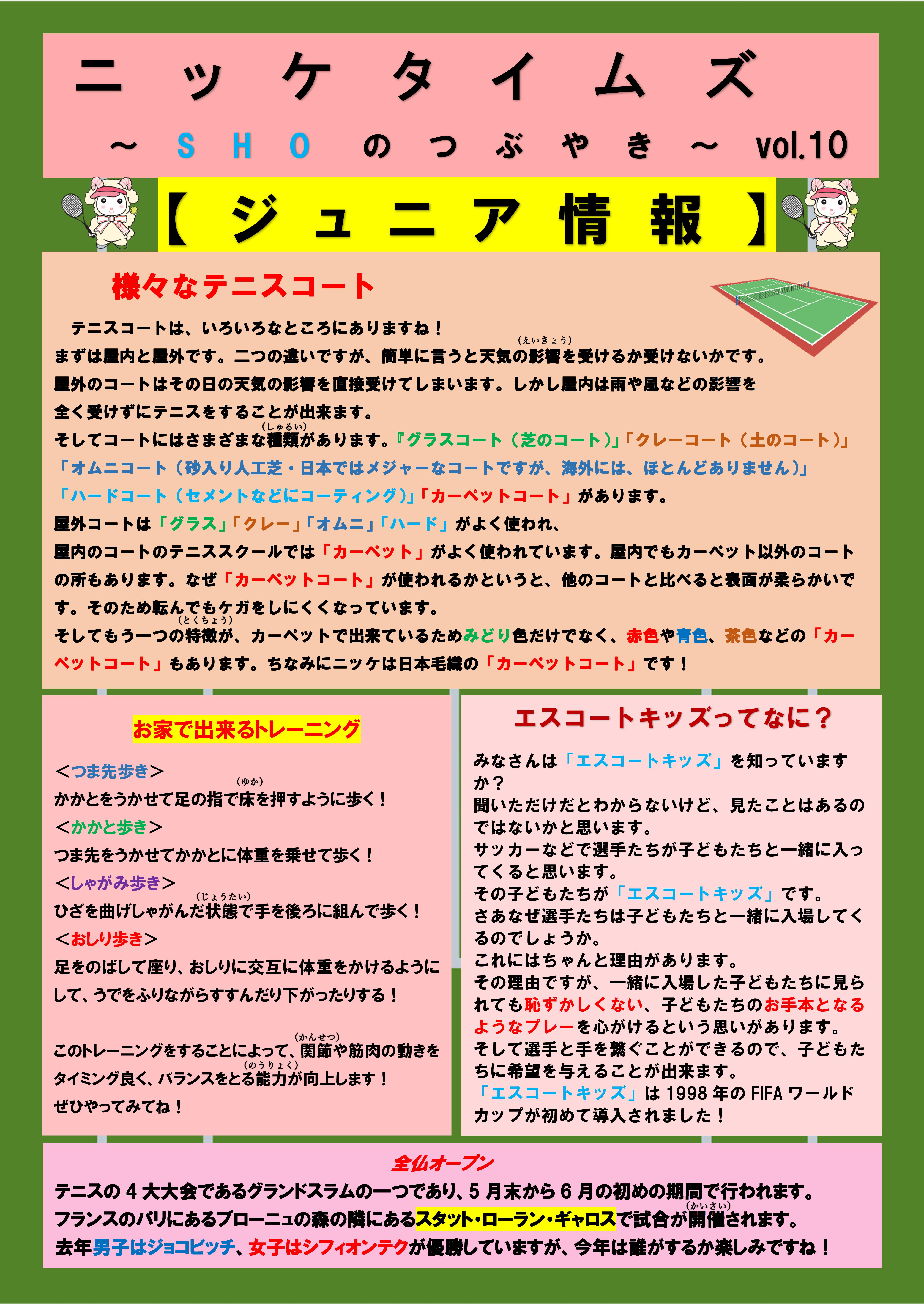 イベント結果 3月29日(金)開催!オープン女子ダブルス 2024年03月30日 ニッケタイムズ vol.10 2024年03月29日 ジュニア カスタマーボイス! 2024年03月29日 3月24日(日)開催!スペシャルテニス 2024年03月26日 3月10日(日)開催!ジュニアテニス大会 S5の部 2024年03月11日 3月10日(日)開催!ジュニアテニス大会 S4の部 2024年03月11日 3月3日(日)開催!ジュニアテニス大会 S3の部 2024年03月05日 3月3日(日)開催!ジュニアテニス大会 S2の部 2024年03月05日