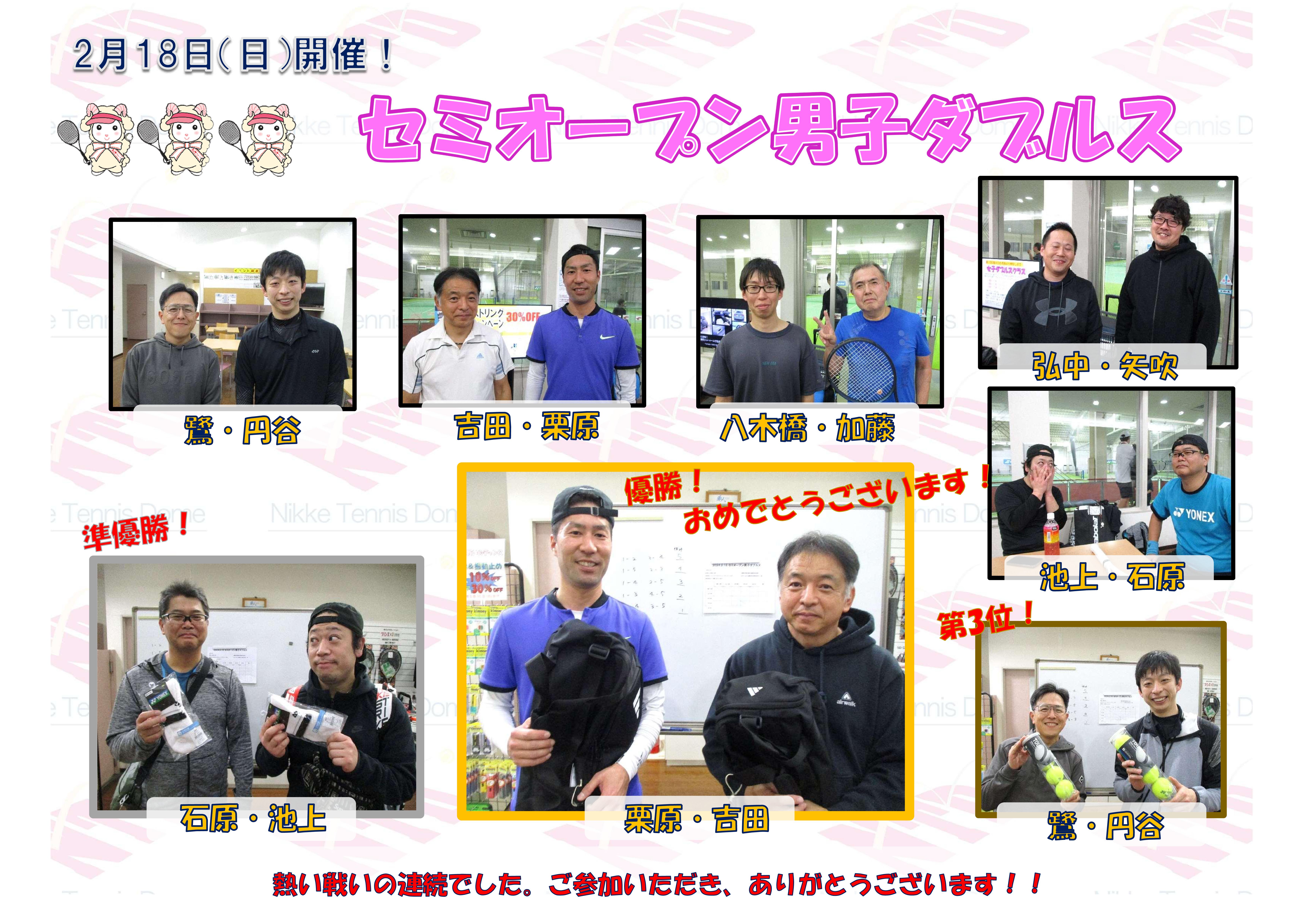 2月18日(日)開催!セミオープン男子ダブルス